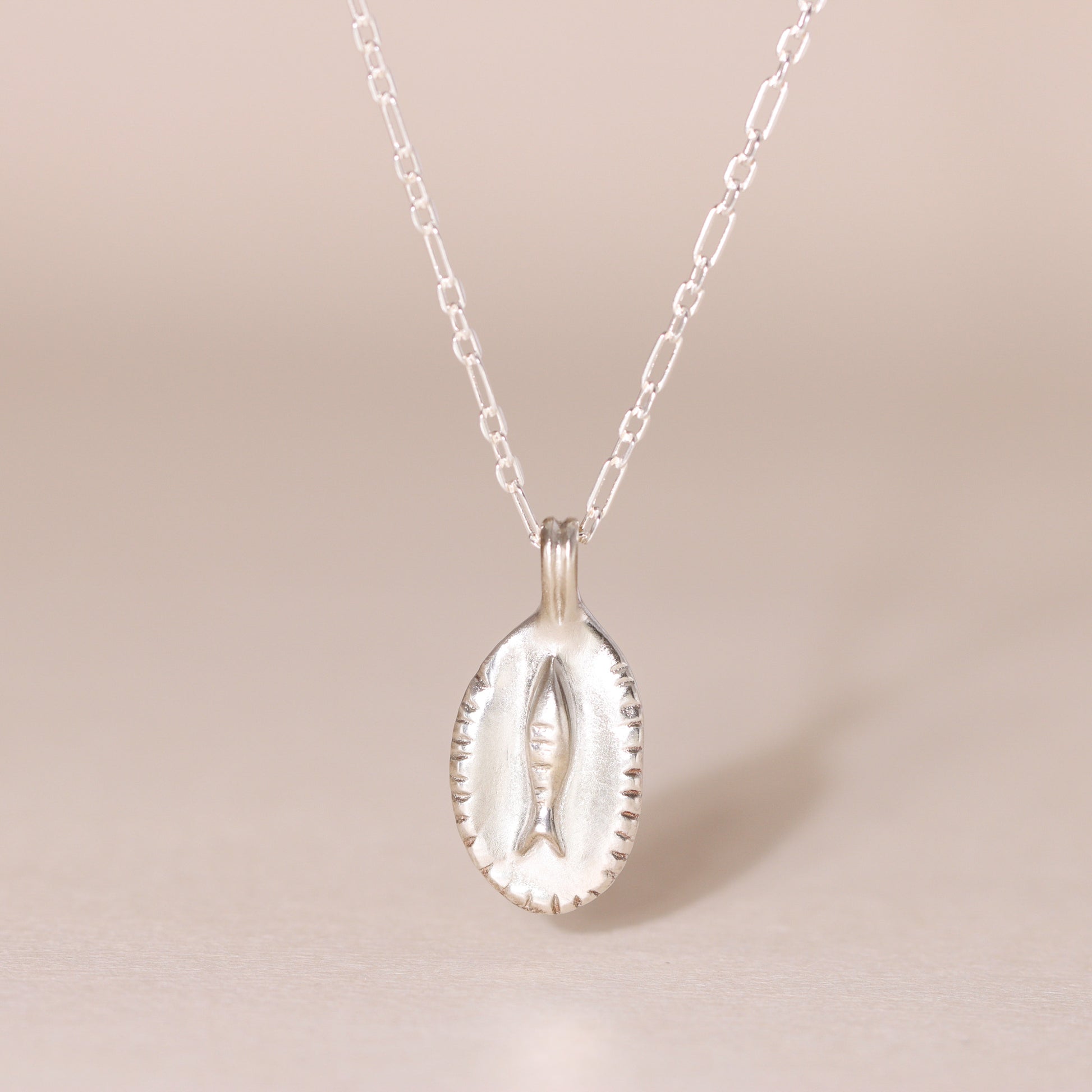 I wanted it to feel like something you’d find in a hidden vintage shop or brought back from a dreamy seaside town. The charm is teeny, shiny, and just the right amount of funny—like, yes, I’m wearing a plated fish around my neck and I love it.