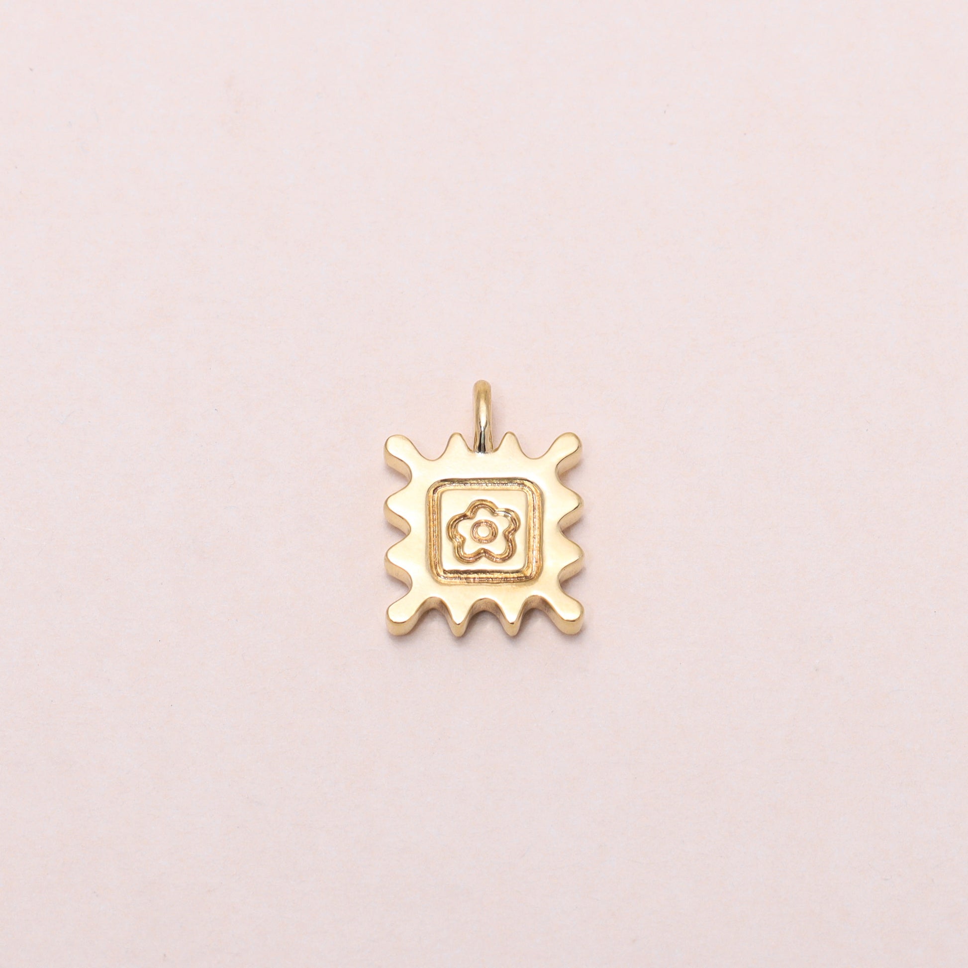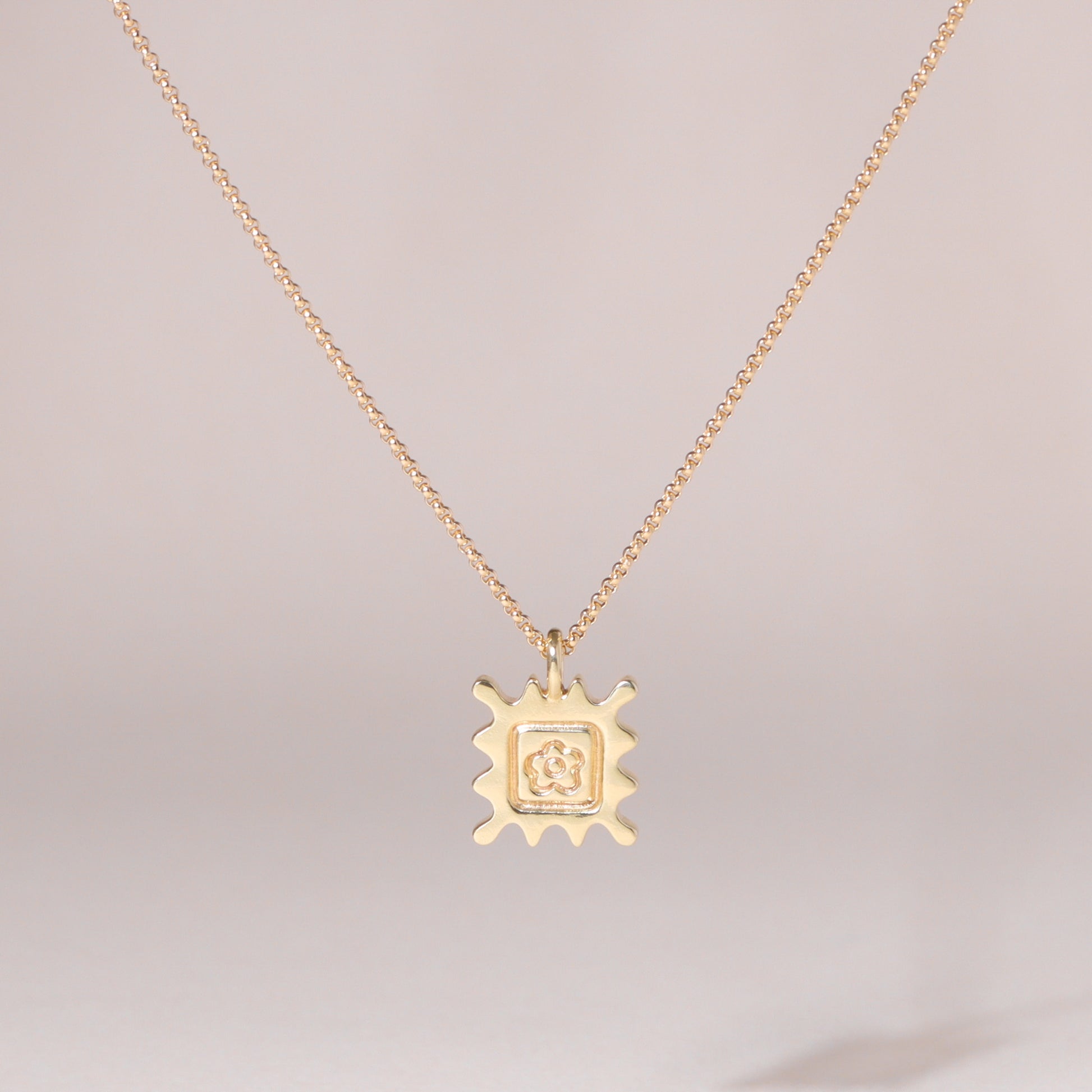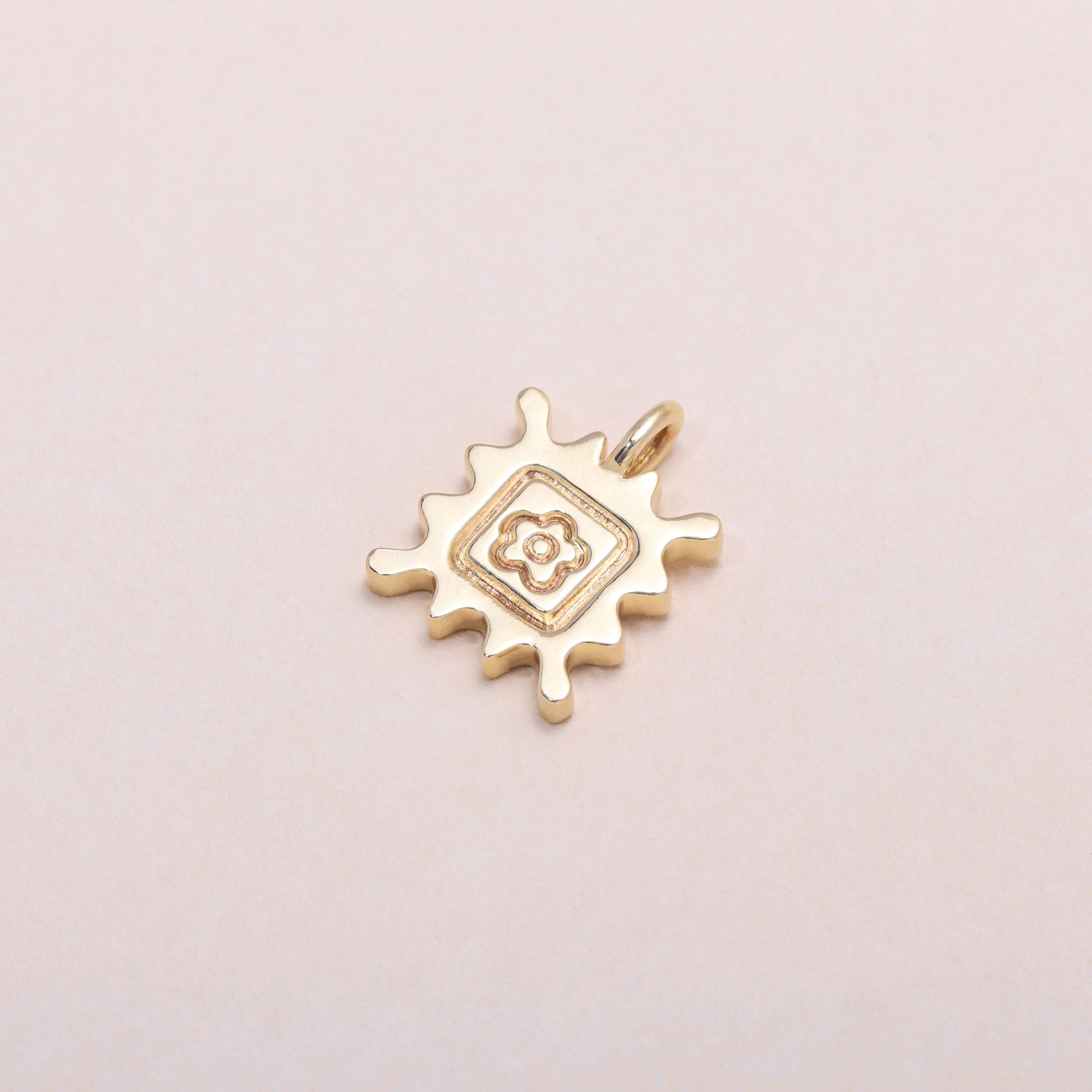 Flower Stamp Charm Necklace 14K Solid Gold