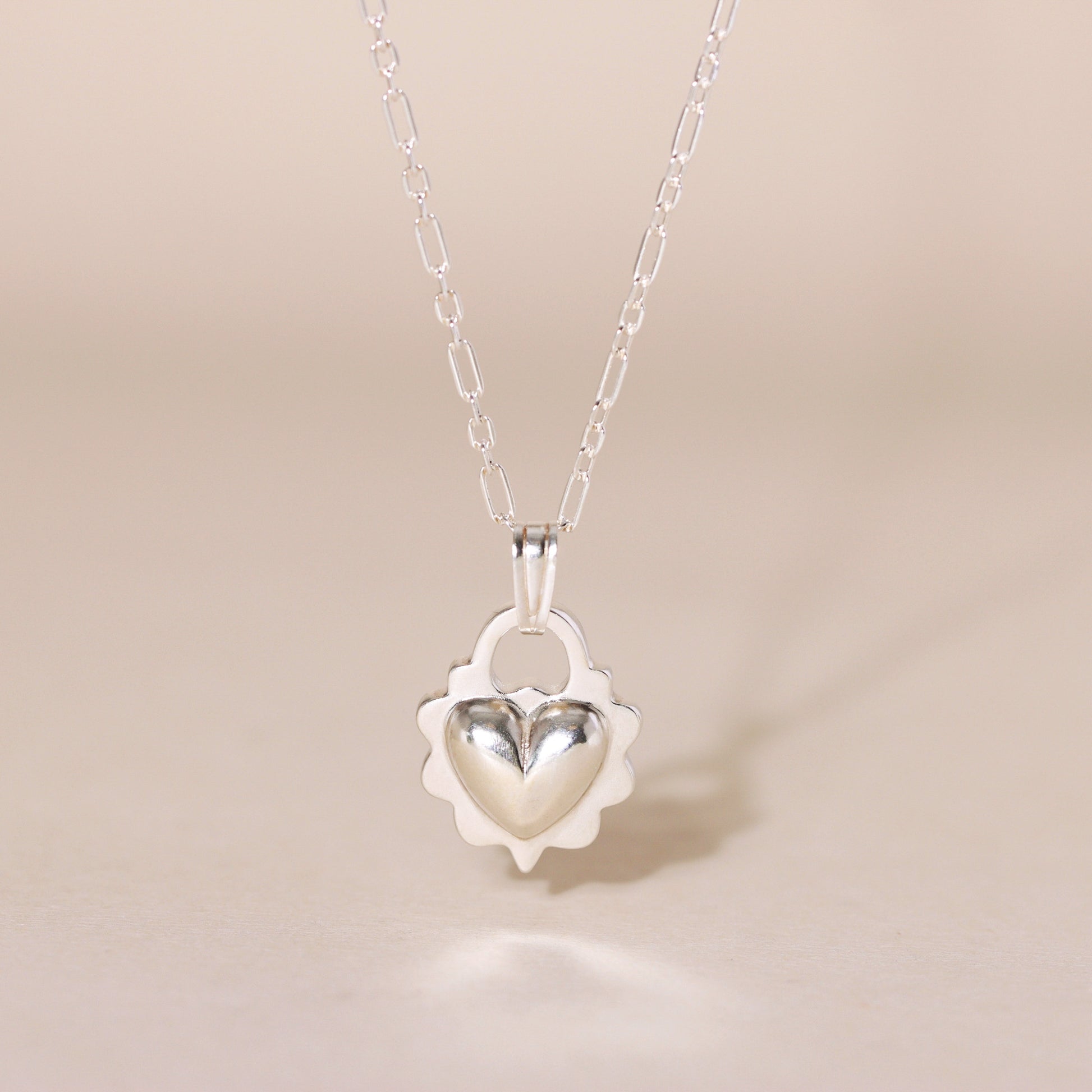 Ruffled Love Heart Charm Necklace