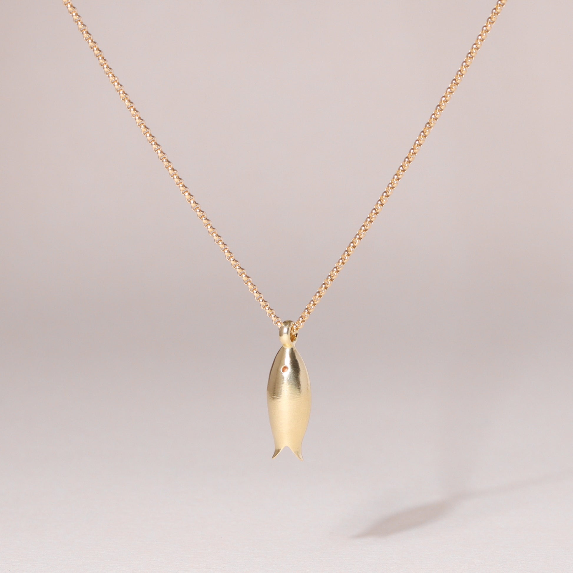 I wanted it to feel fun, effortless, and a little unexpected—something that makes you smile without trying too hard. The tiny sardine charm hangs delicately from the chain, catching the light in the cheekiest way. Whether you're an ocean lover, a seafood enthusiast, or just vibing with something a bit offbeat, this little fish is ready to tag along.