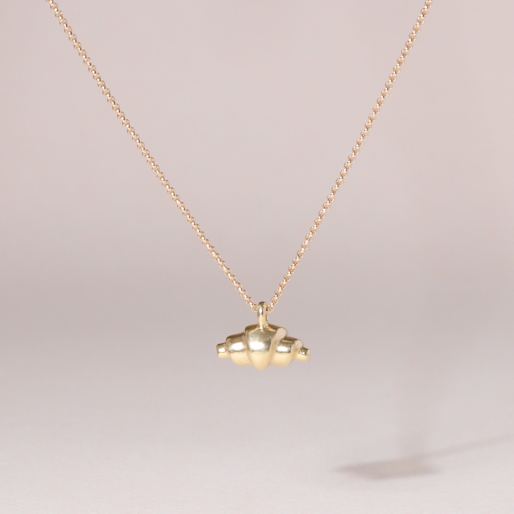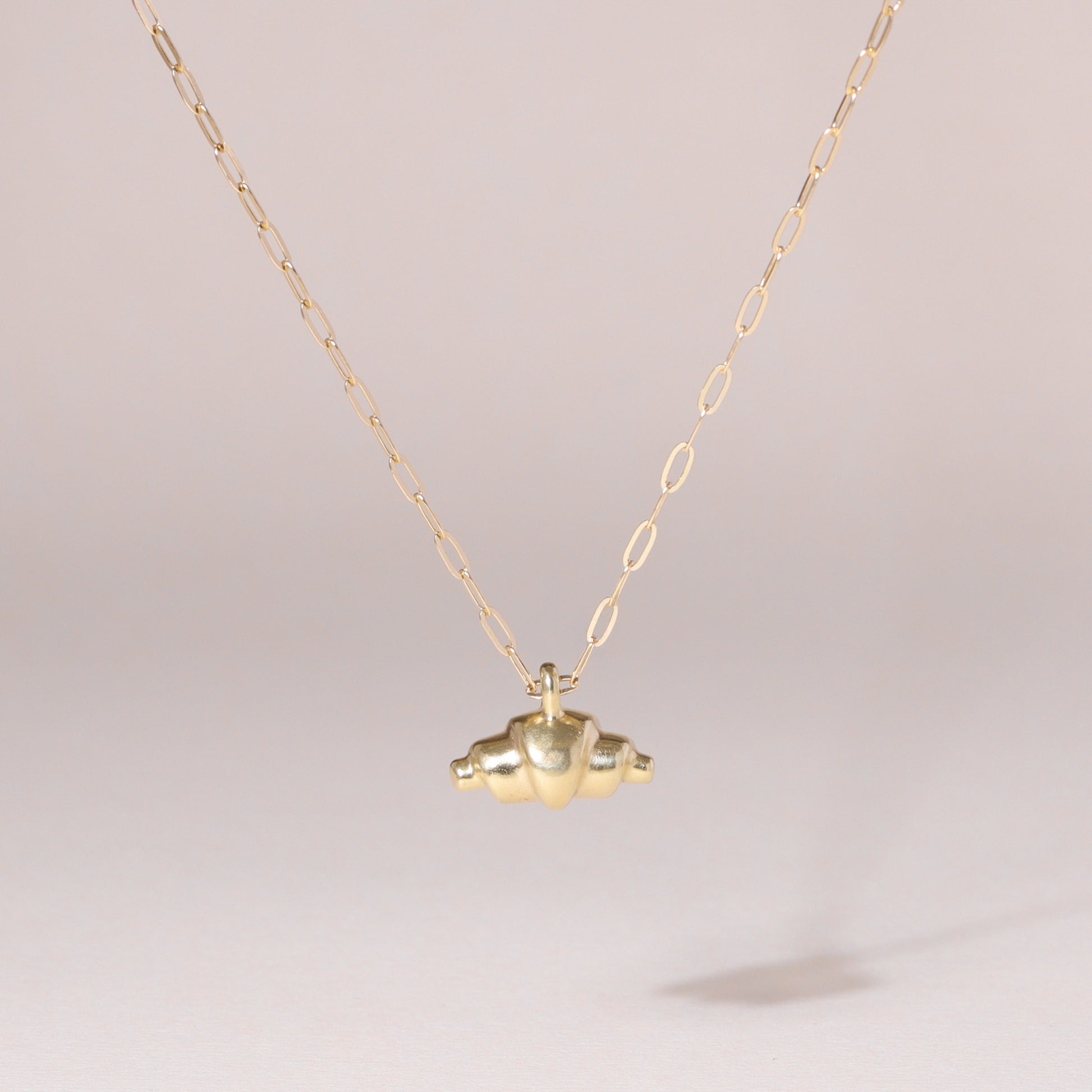 Pre-Baked Croissant Charm Necklace 14K Solid Gold