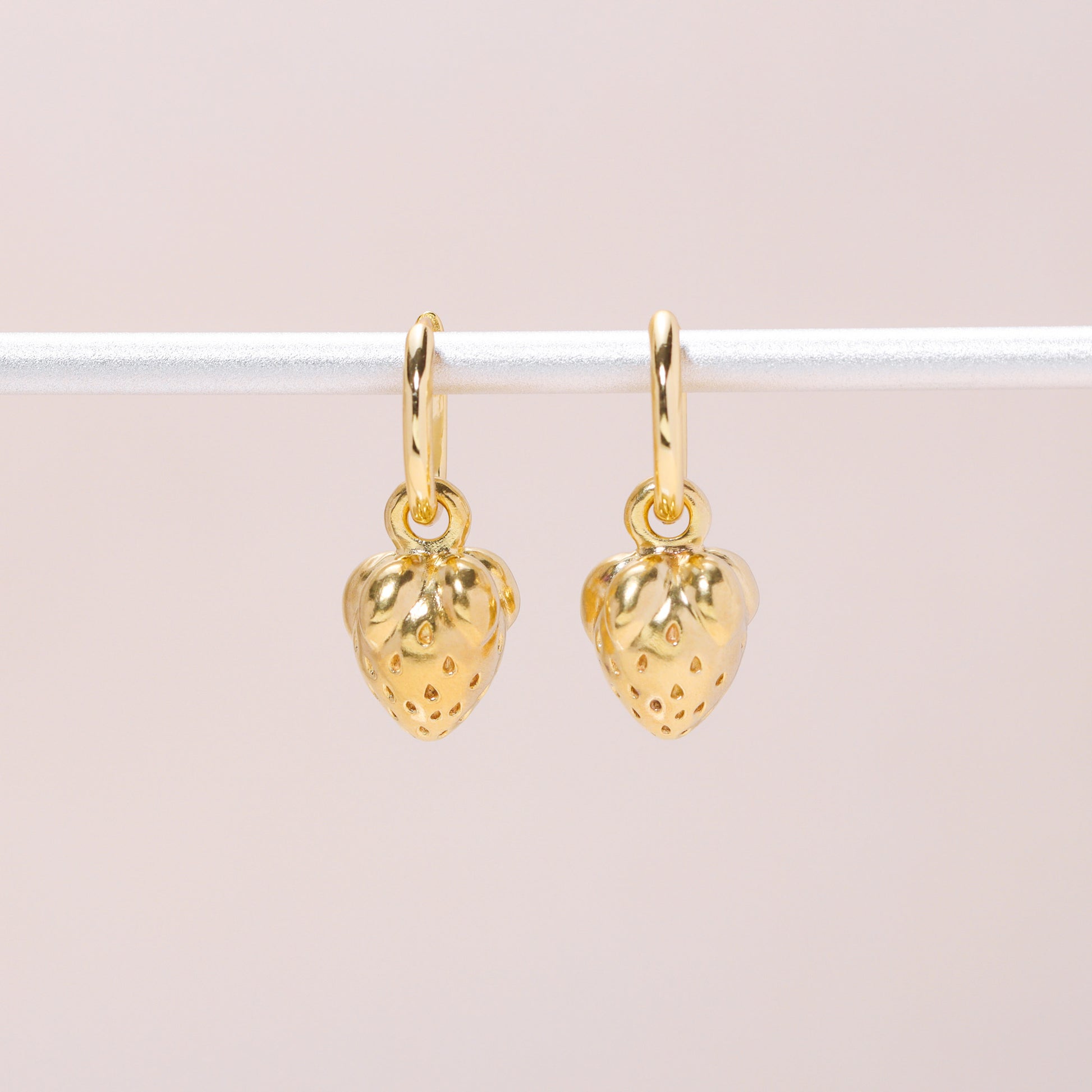 These earrings are designed to be playful, vibrant, and just a little bit extra, with the cutest tiny strawberry charm dangling from each hoop. Whether you’re a fruit lover, a foodie, or just looking for something fun and unique, these hoops are sure to add some sweetness to your life.