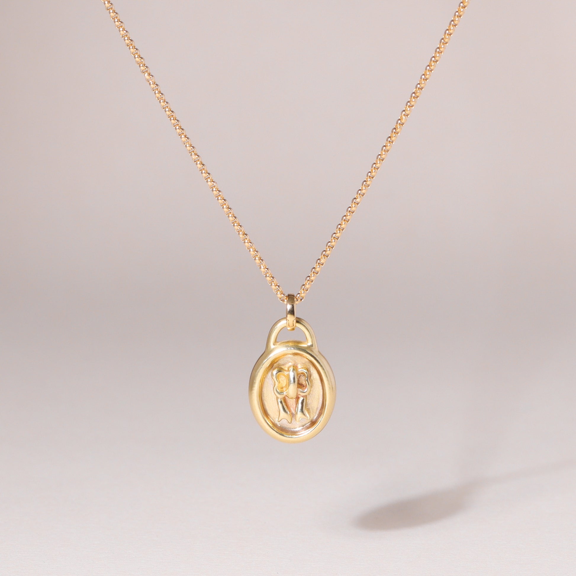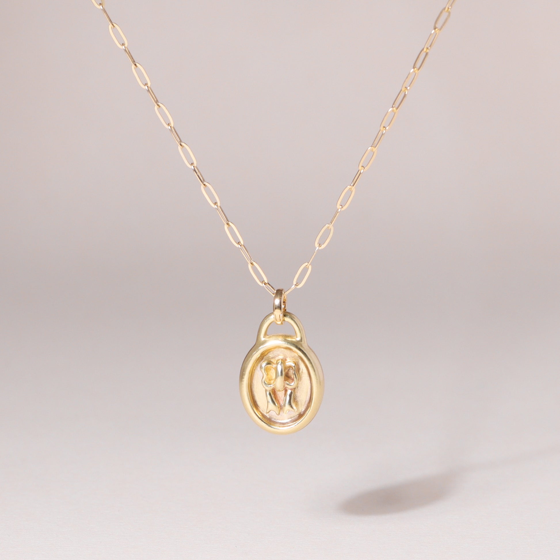 Sweet Oval-Framed Bow Charm Necklace 14K Solid Gold